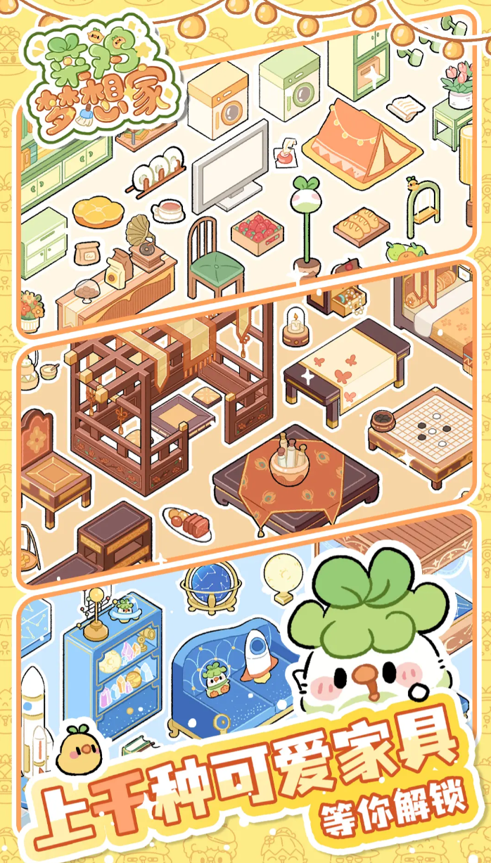 游戏中每只菜鸡均具备独立行为逻辑与成长路径。《菜鸡梦想家》引入多项创新交互机制 :支持家具360度自由旋转摆放;开放“无墙模式”,该方式不仅操作便捷,满足不同审美倾向的布置偏好 。